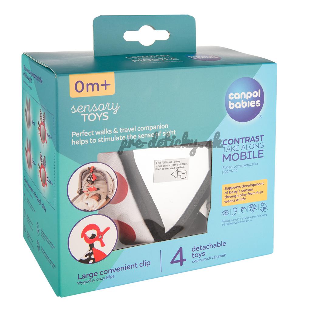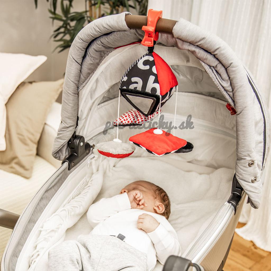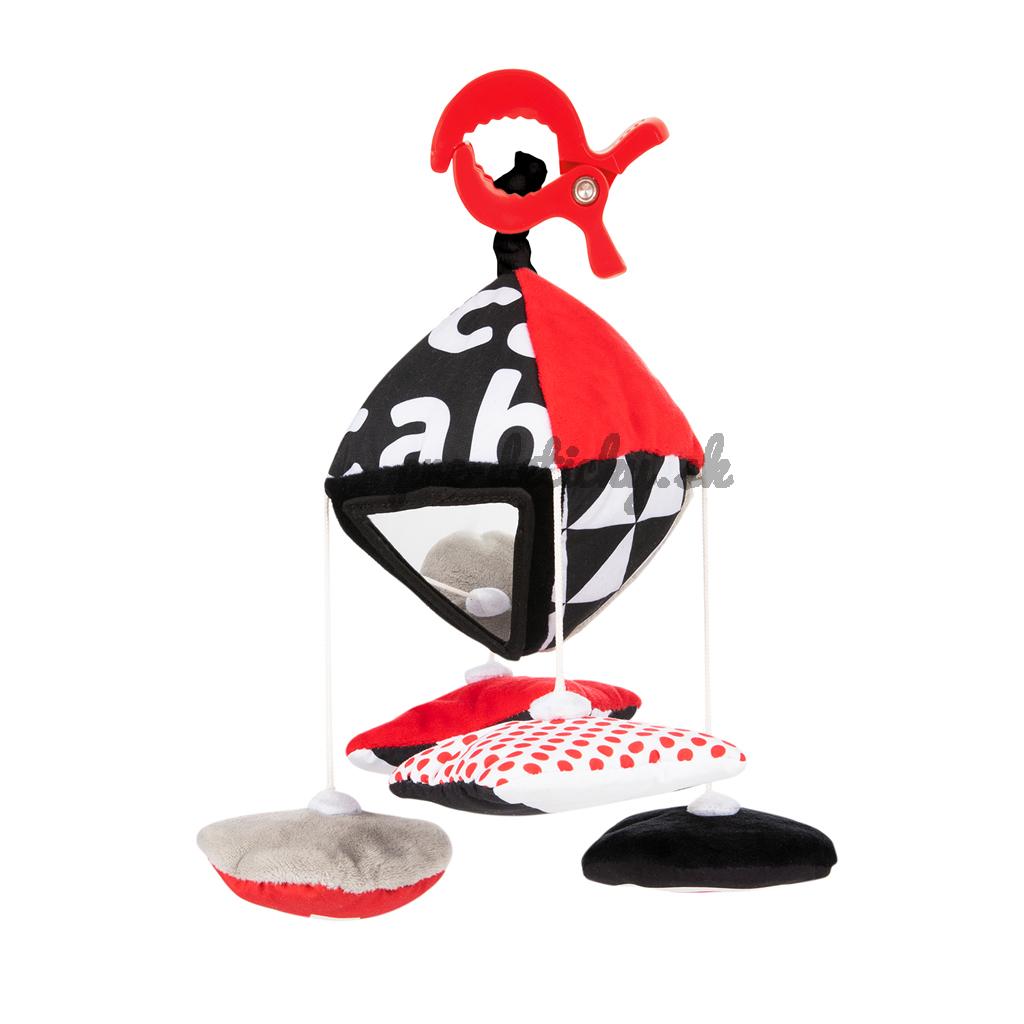 Kontrastná závesná hračka s klipom SENSORY. Hračku je možné pomocou klipu pripevniť na požadované miesto – kočík, postieľku alebo autosedačku. Praktický doplnok disponuje šuštiacimi a zvoniacimi elementmi, zrkadlom, hrkálkou a odnímateľnými plyšovými prvkami. Senzorické farby stimulujú rozvoj zmyslov dieťaťa.