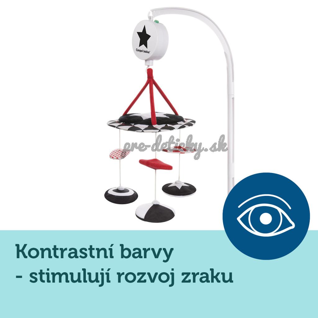 - Kontrastný plyšový kolotoč s melódiami SENSORY je určený pre postieľky bábätiek.