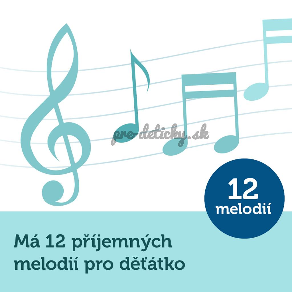- Vhodný je najmä na zaspávanie bábätiek, ponúka voľbu z 12 melódií.