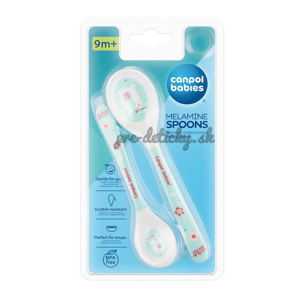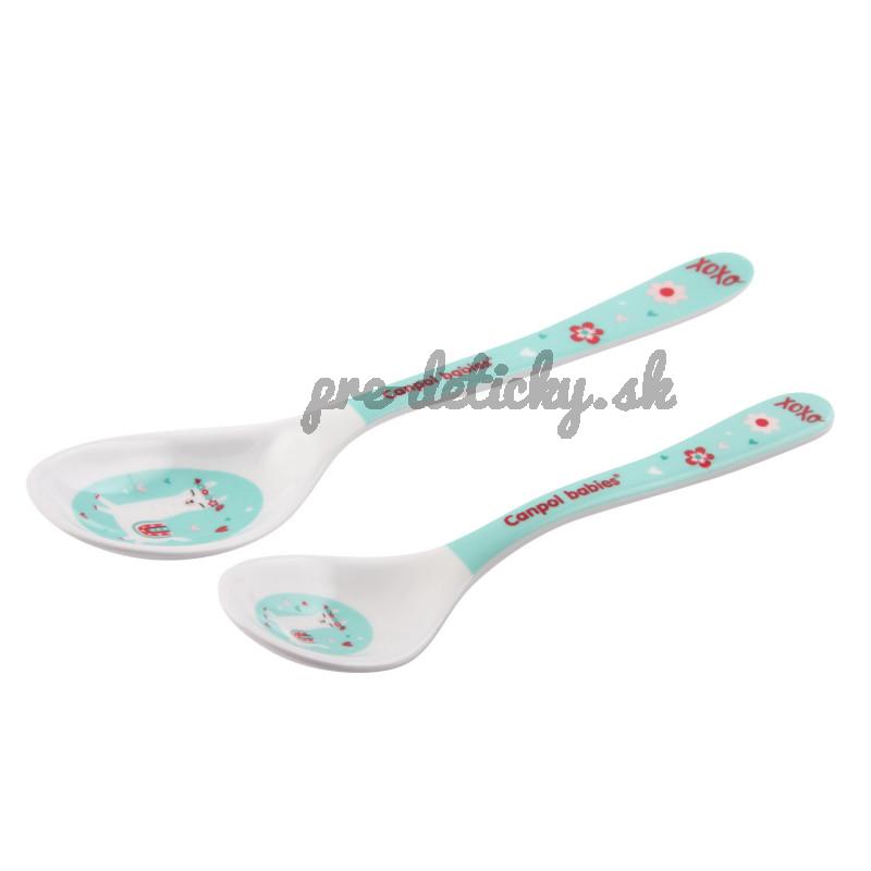 Lyžice na kŕmenie z melamínu odolného voči poškriabaniu.