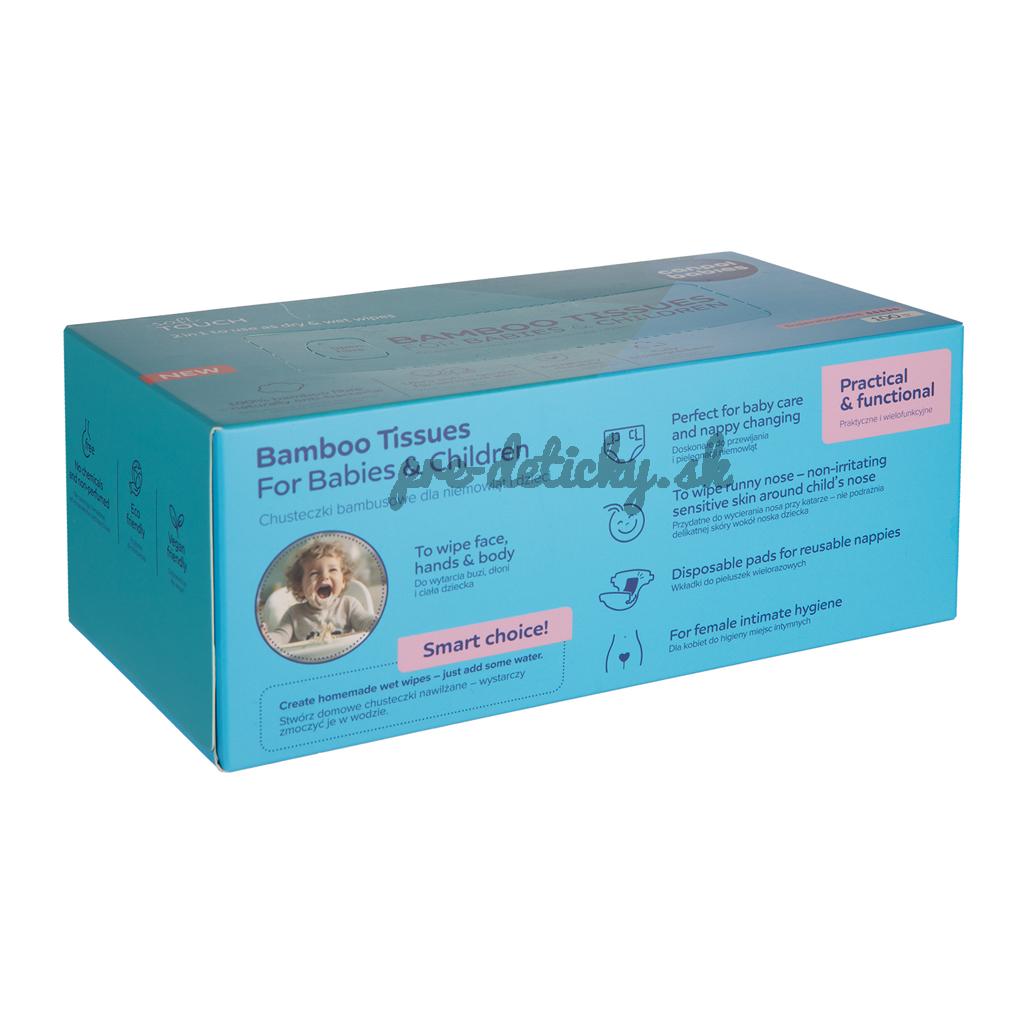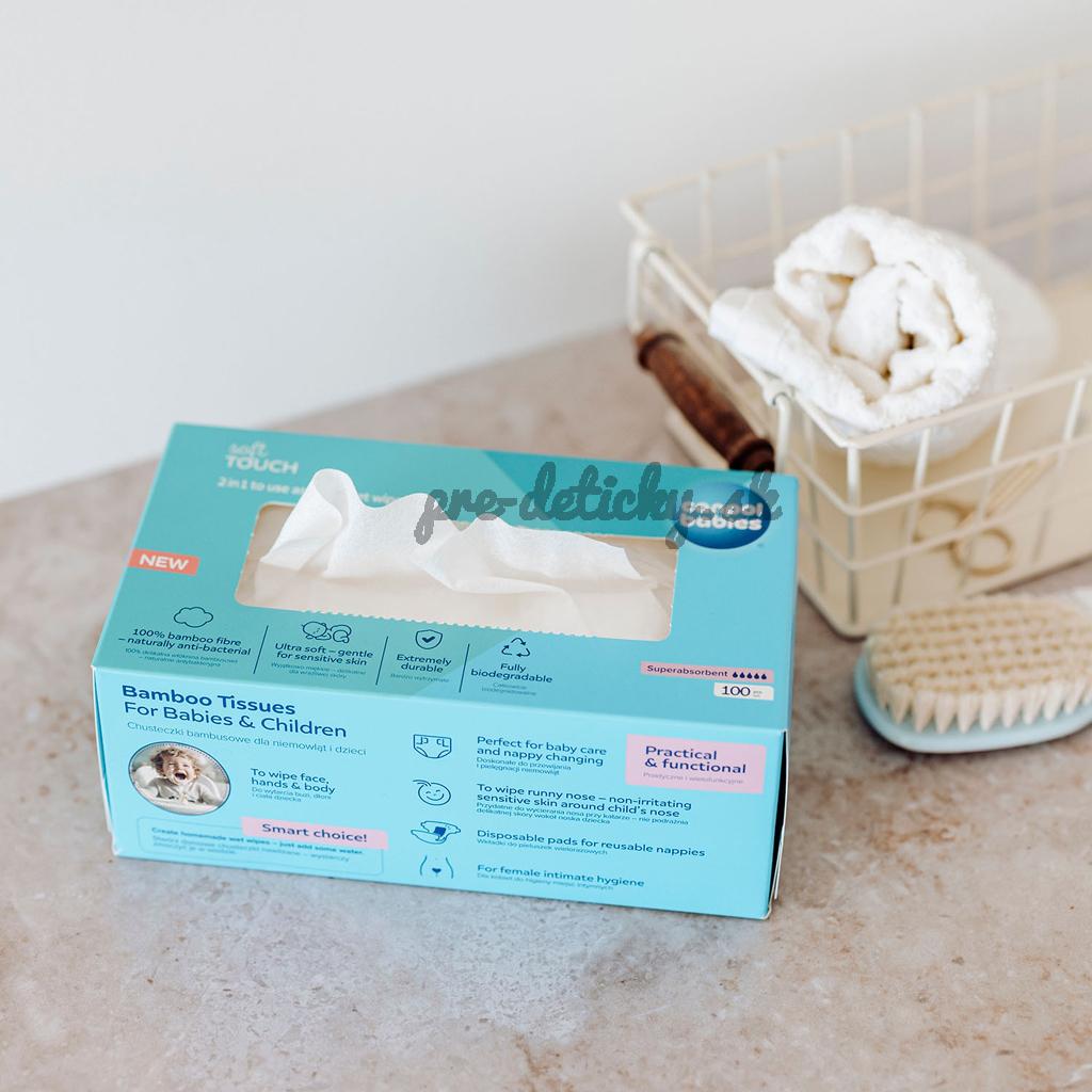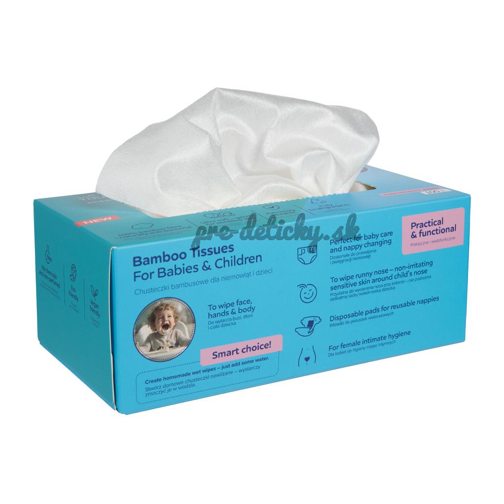 Vyrobené z jemnej bambusovej netkanej textílie, ktorá je prirodzene antibakteriálna. Neobsahujú chemikálie, konzervačné látky ani iné vonné látky, ktoré by mohli u dieťaťa vyvolať alergickú reakciu. Nebielené chlórom.