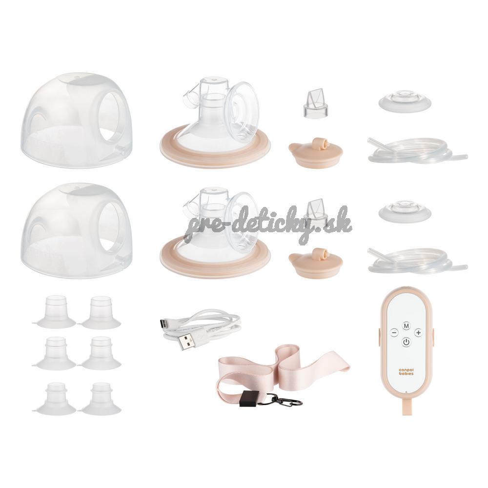 Sada obsahuje: napájací kábel typu C, ovládacie zariadenie odsávačky mlieka (telo odsávačky), silikónová membrána 2 ks, spätný ventil 2 ks, lievik o veľkosti 27 mm 2 ks, zásobník na zber mlieka 2 ks, uzáver membrány 2 ks, silikónová hadička 2 x 19mm, 2 x 21mm, 2x 24mm), šnúrka na zavesenie odsávačky, nadstavec na ramienko podprsenky 2 ks.