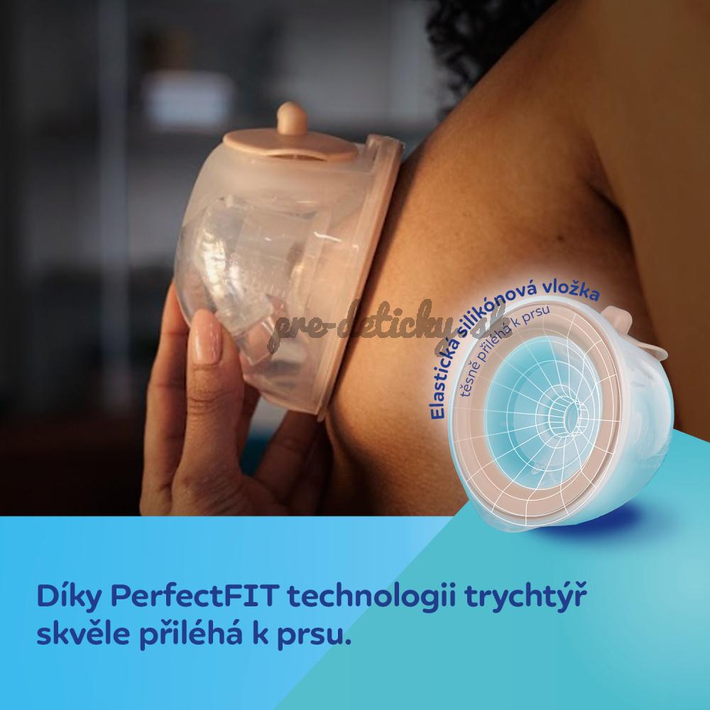 - Technológia PerfectFIT – elastický krúžok na lieviku tesne prilieha k prsiam, čím sa minimalizuje riziko úniku odsatého mlieka.