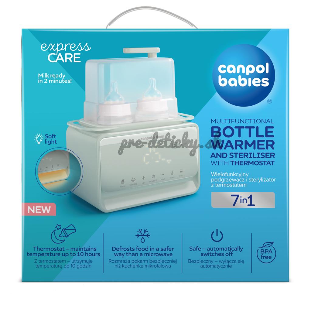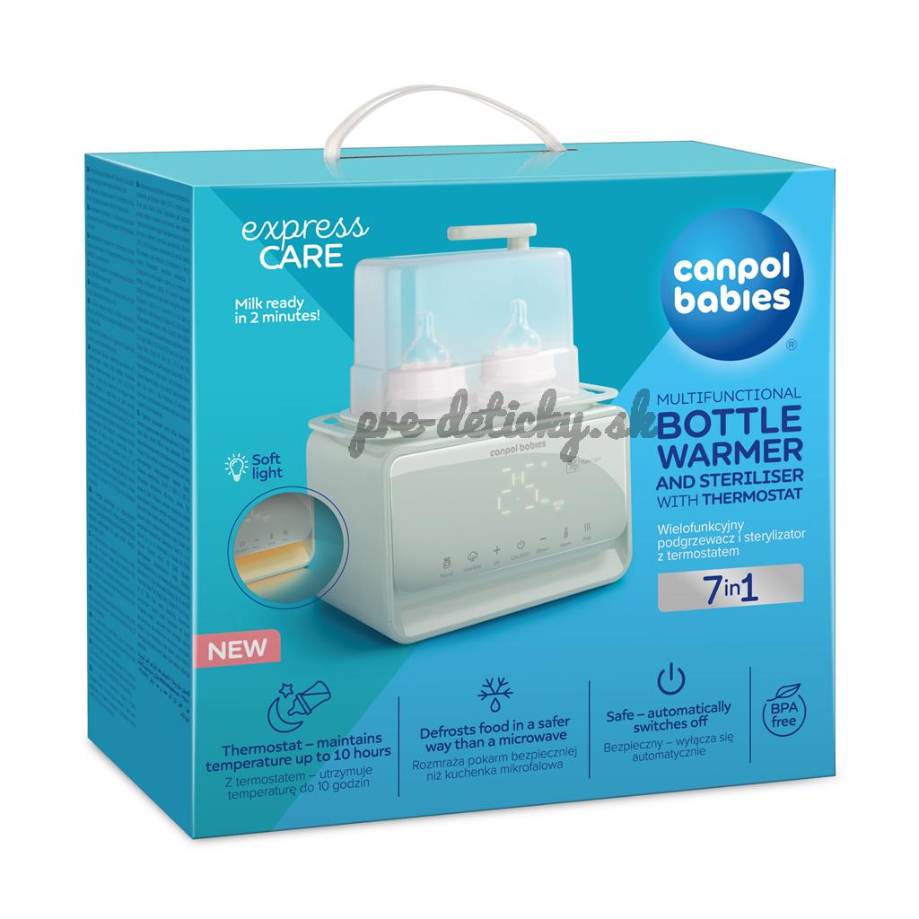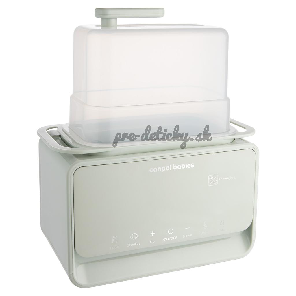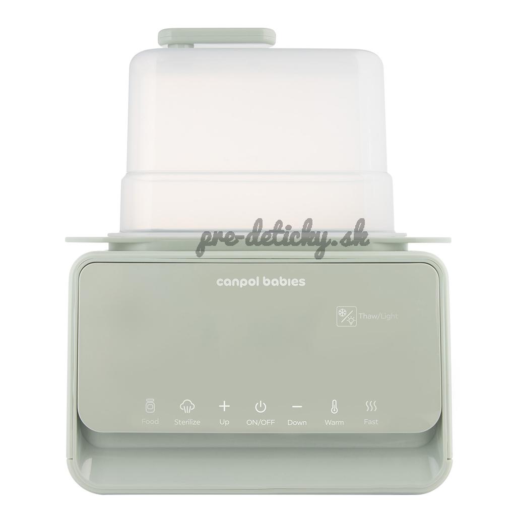 Elektrický ohrievač a sterilizátor fliaš Canpol babies 7v1 s termostatom a lampou je multifunkčné zariadenie, s ktorým je príprava jedla pre vaše dieťa rýchla a jednoduchá. Ponúka 7 rôznych režimov: ohrev mlieka, ohrev príkrmu/poháre, rýchly ohrev (za 2-3 minúty), rozmrazovanie, sterilizáciu, udržiavanie teploty a funkcie nočného svetla.