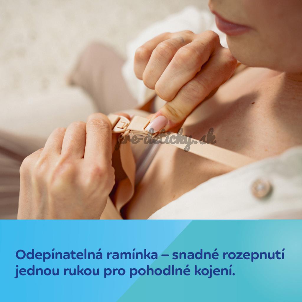 Integrované tvarovacie vypchávky zostávajú na svojom mieste pri nosení aj praní. Podprsenka bezpečne udržuje odsávačku materského mlieka a podporuje efektívne odsávanie. Je príjemná na koži a pohodlná aj pri spánku či nočnom dojčení. Zvýšená cirkulácia vzduchu zaisťuje sucho a pohodlie aj pri dlhšom sedení/odsávaní.