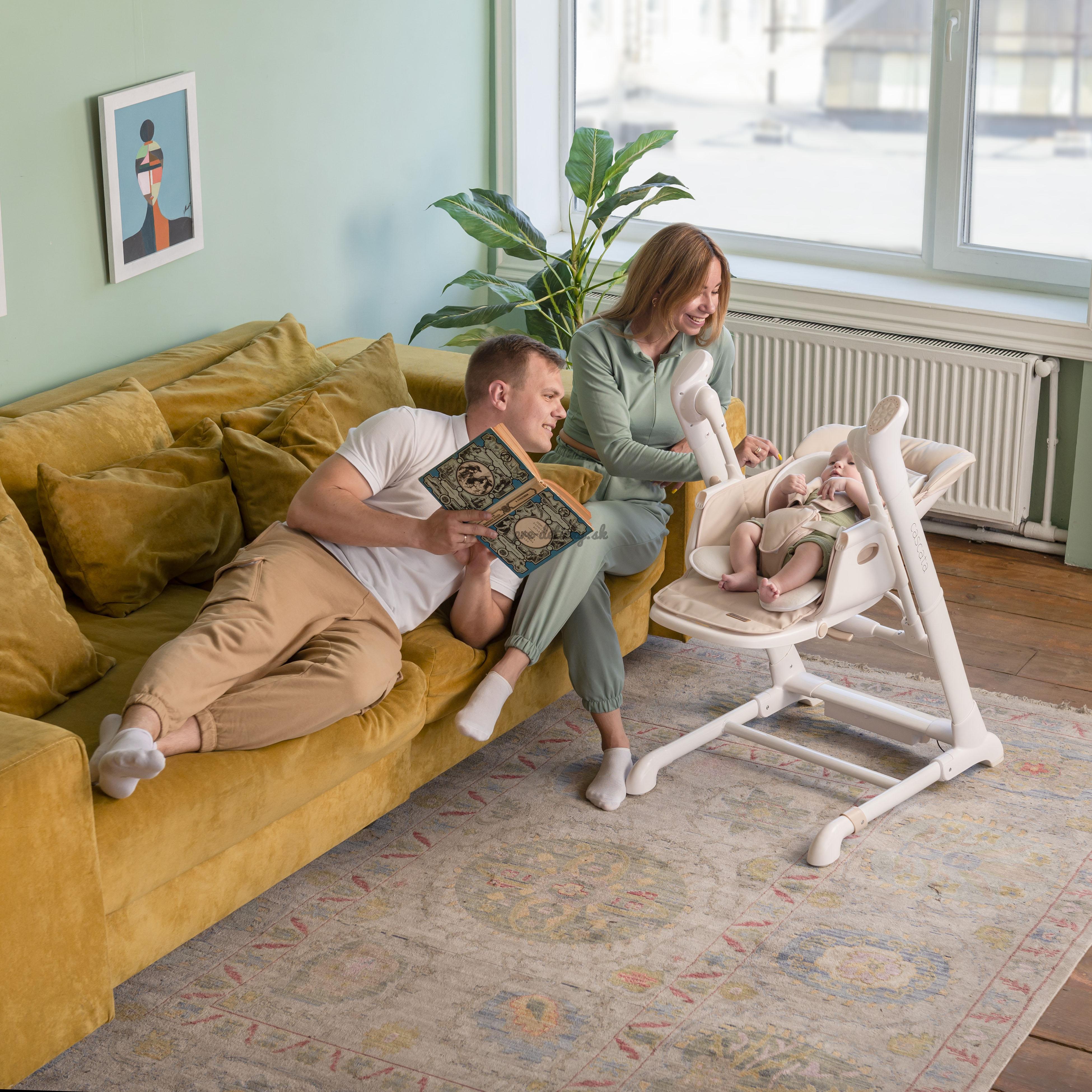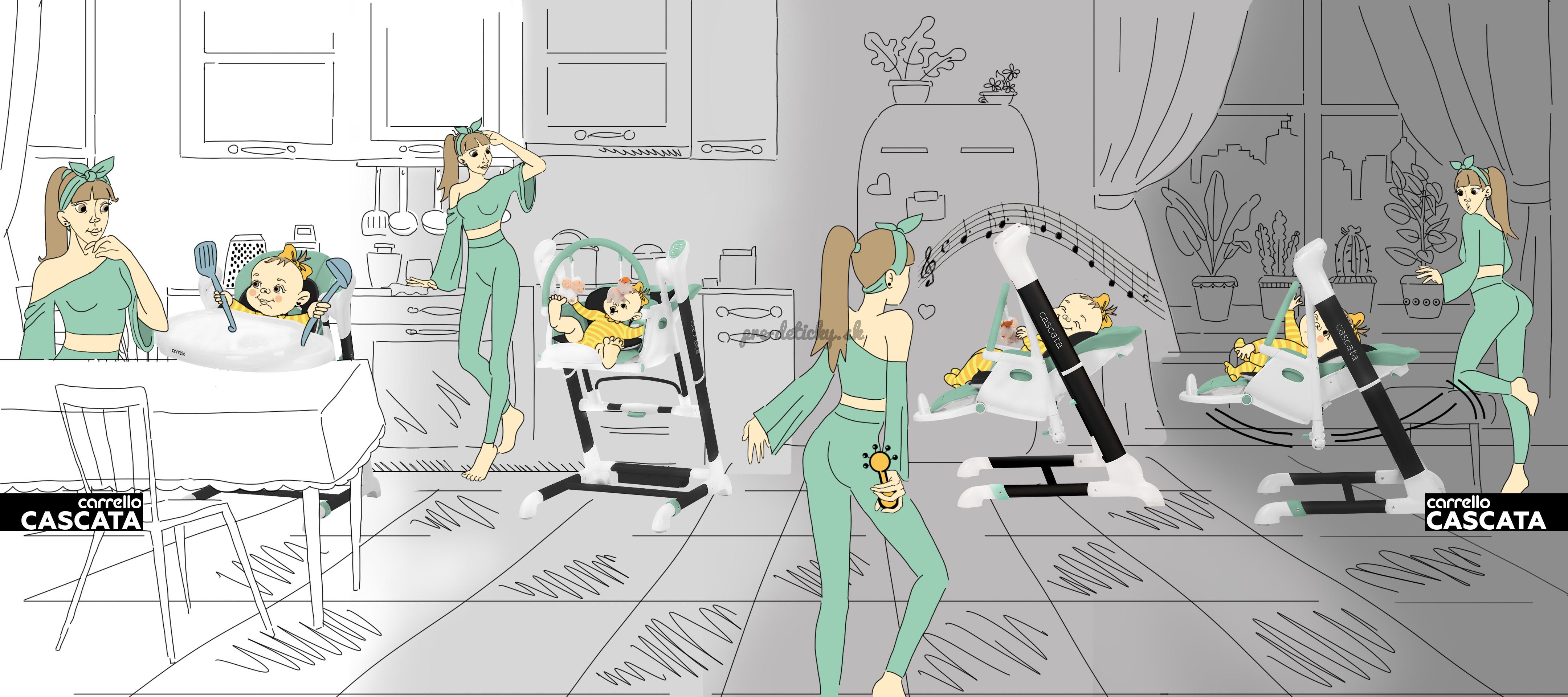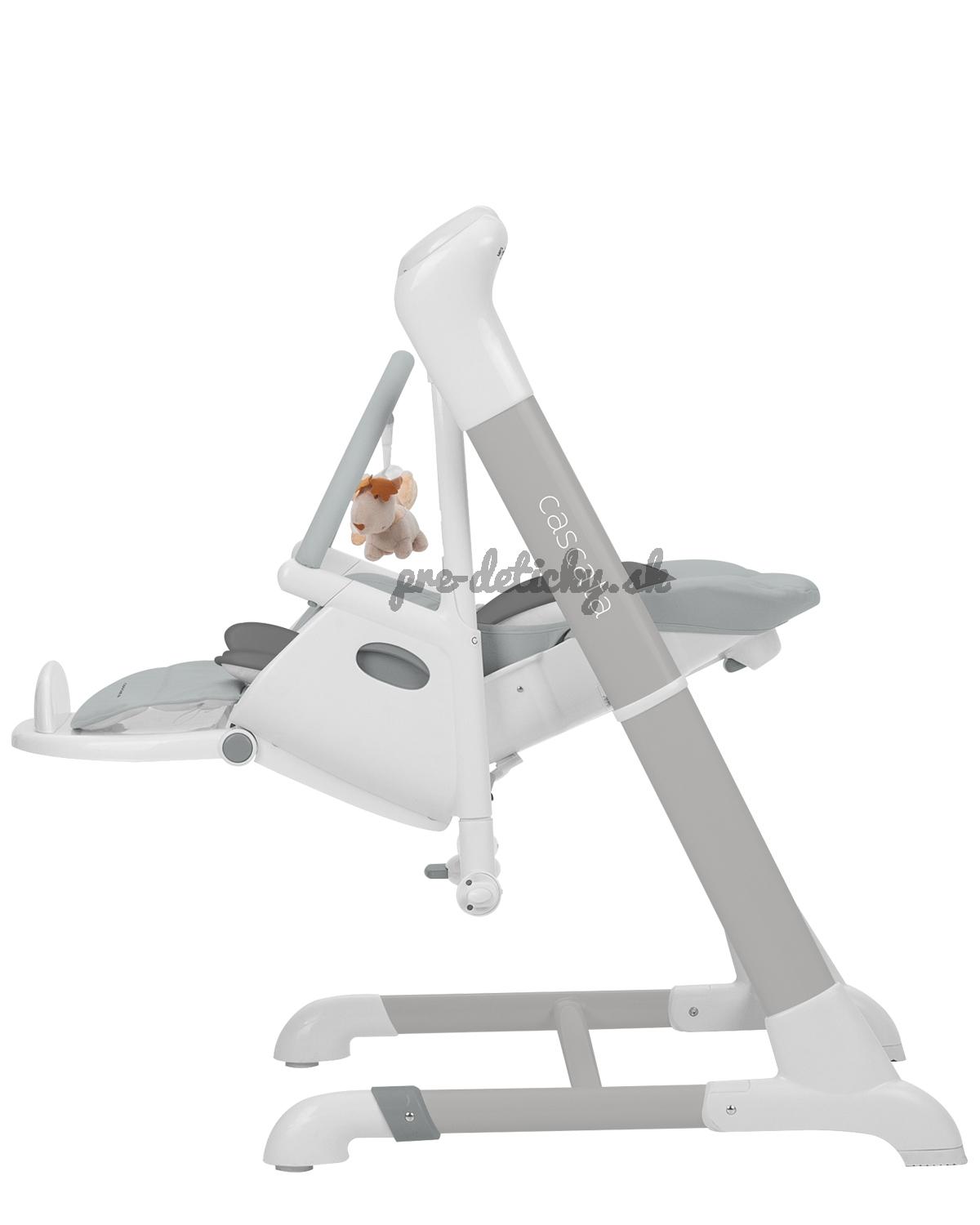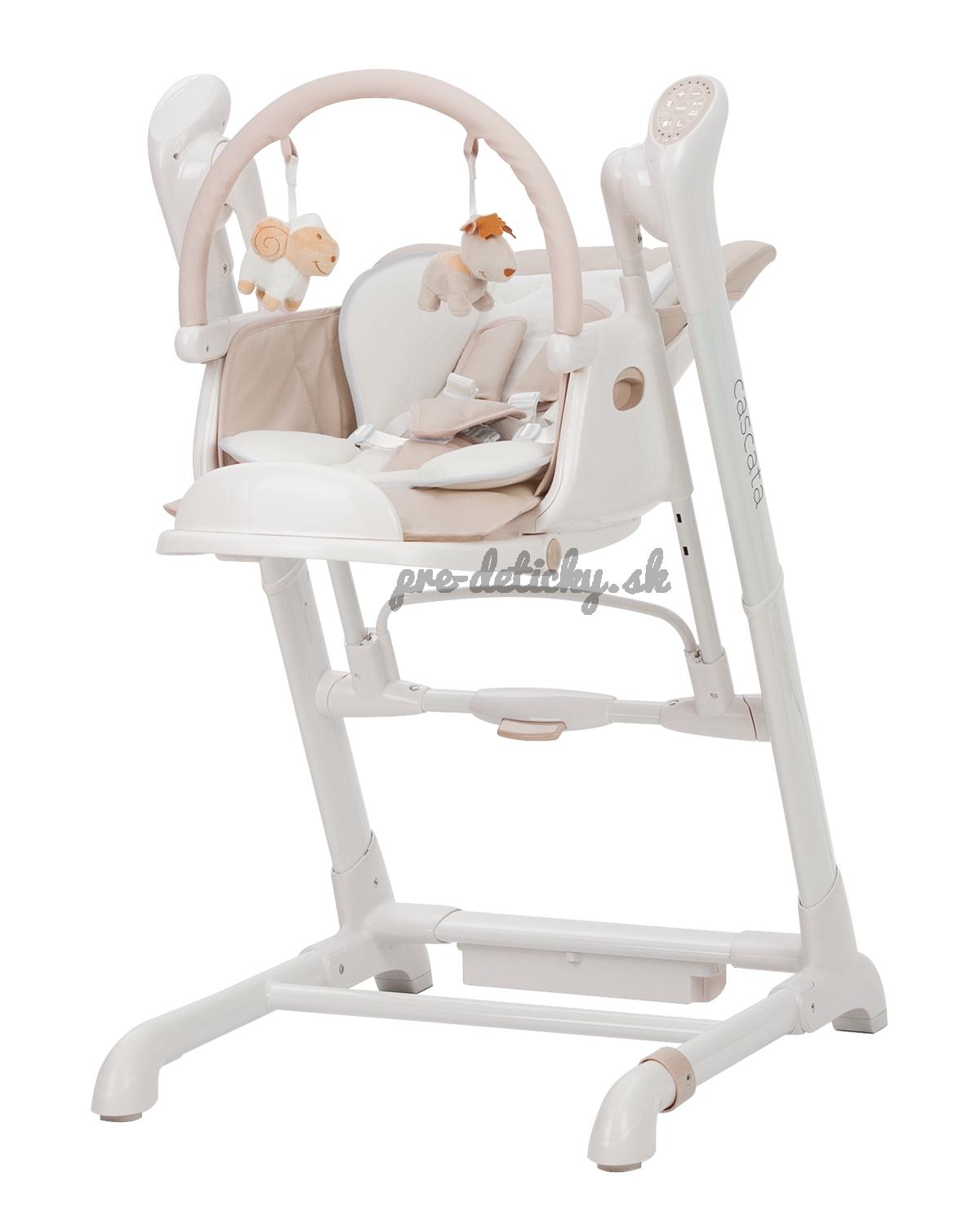 Cascata je multifunkčná stolička, ktorá kombinuje funkcie ležadla, hojdačky a stoličky na kŕmenie.