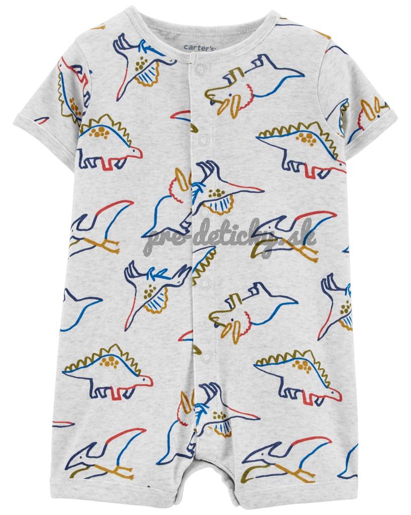 CARTER'S Overal letný krátky rukáv Grey Dino chlapec NB/ veľ. 56