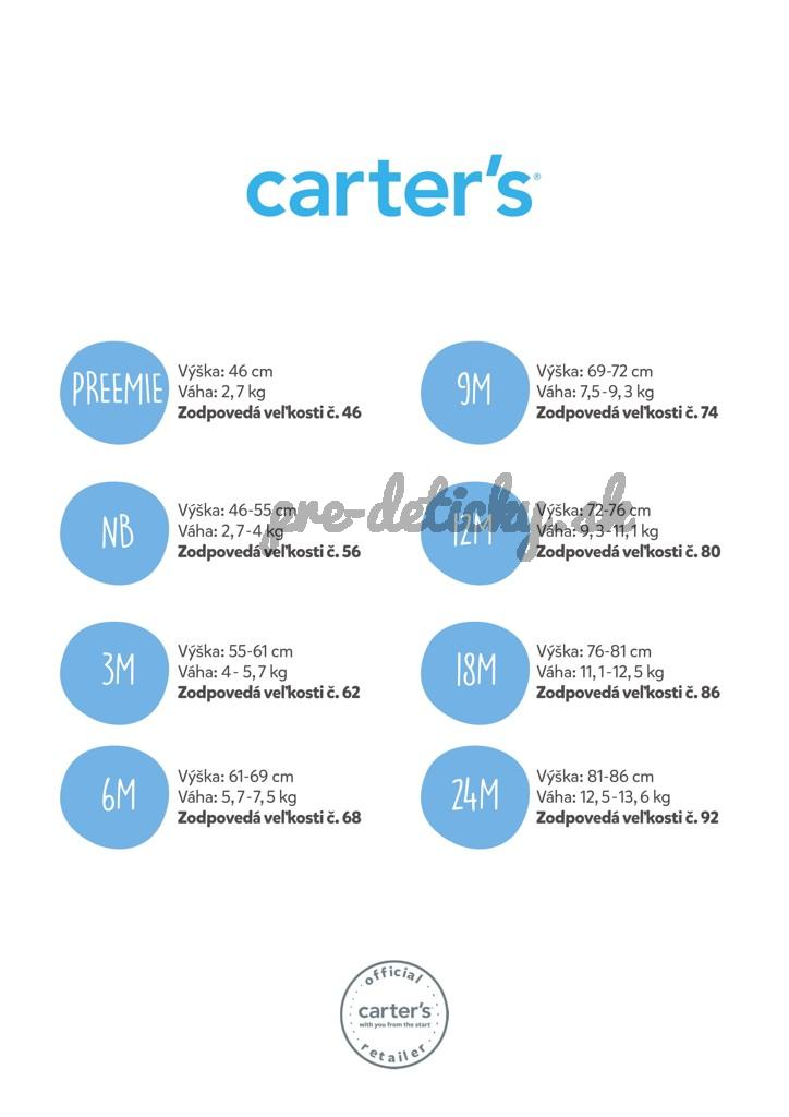 Všetky modely značky Carter‘s sú vyrobené zo super mäkkej bavlny a množstvom lásky. Overaly sú perfektné pre štart Vašej výbavičky a určite by nemali chýbať v žiadnom šatníku dieťatka. Navrhnuté sú tak aby boli veľmi pohodlné. Ideálne sú na hranie a spánok.