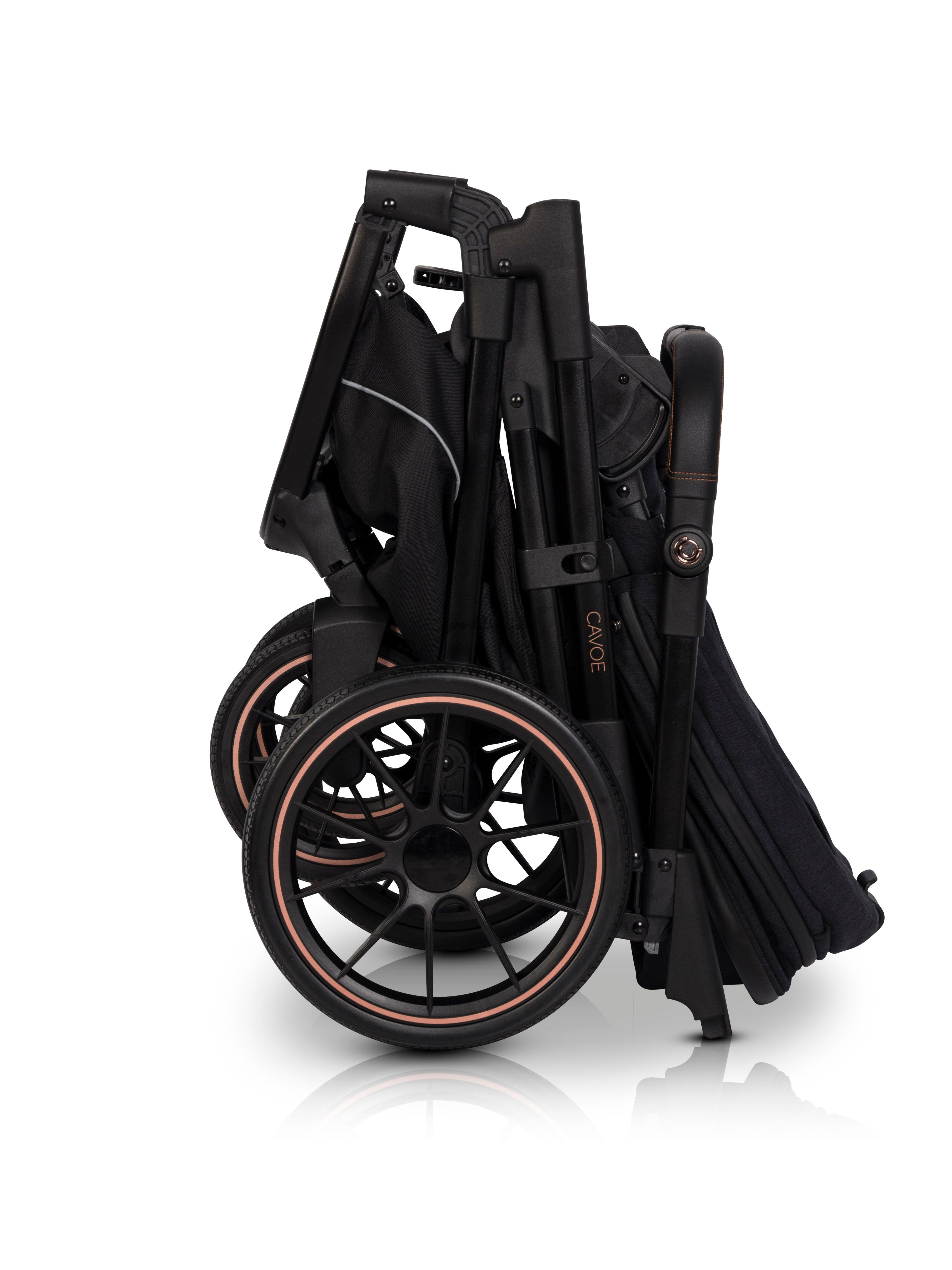 Kočíky Cavo sú známe nielen elegantným prevedením, ale tiež tým, že obyčajné veci menia v multifunkčnej. Z obyčajné tašky si ľahko urobíte prebaľovaciu podložku kdekoľvek. Pás a úchyty ku kočíku sú samozrejmosťou.