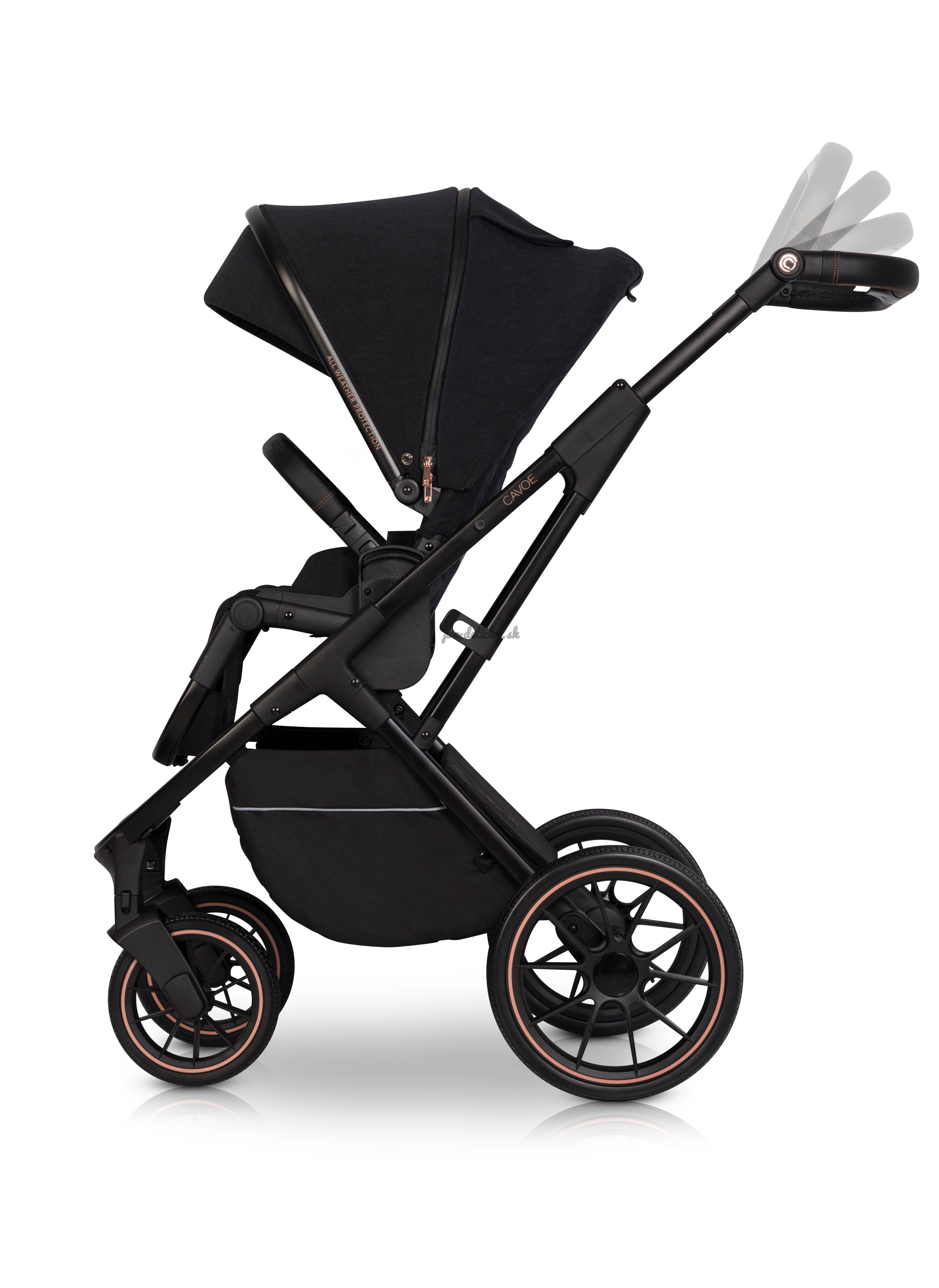 Športový kočík Cavo AXO je krásnym, štýlovým a praktickým kočíkom, ktorý zaujme na prvý pohľad. Kočík sa perfektne ovláda a bábätku dopraje maximálne pohodlie a bezpečie. Ak máte predpoklady, že vaše dieťatko bude svojou výškou napred pred svojimi rovesníkmi, budete potešení rozmery kočíka. . Veľké gumové kolieska sú skvelá aj do náročnejšieho terénu.