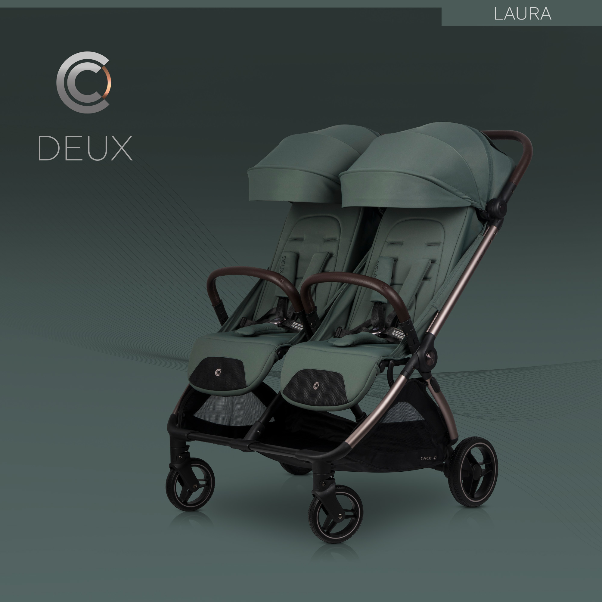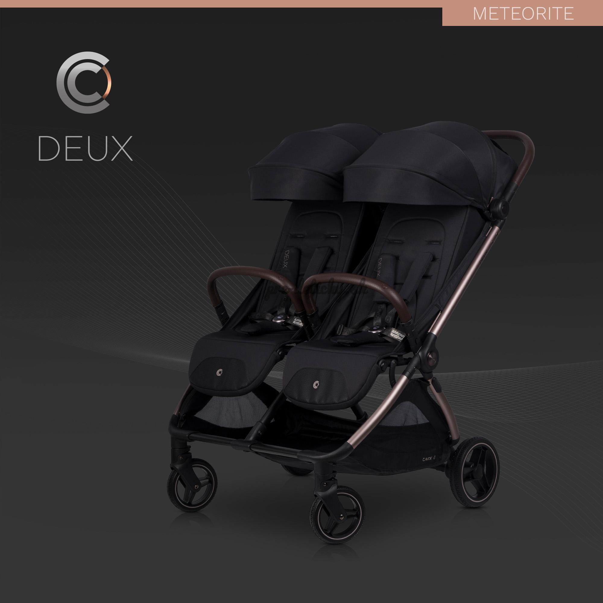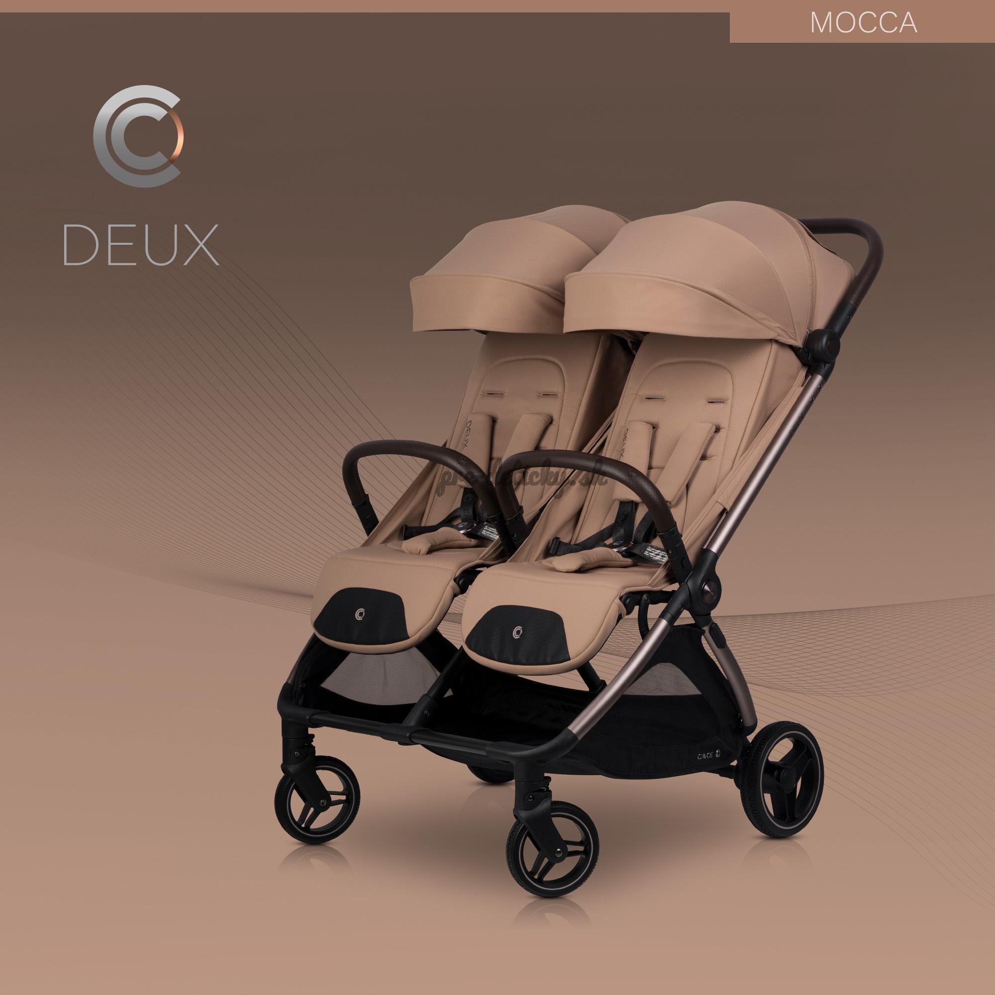 Športový kočík pre dvojičky CAVOE DEUX disponuje dvoma nezávislými a plne funkčnými sedadlami. Môžete ľubovoľne konfigurovať nastavenie operadla, podnožky a striešky pre každé sedadlo zvlášť. Sedadlá sú určené pre deti od narodenia až do 22 kg (približne do 4 rokov), takže DEUX je ideálny ako športový kočík pre dve deti v rôznom veku.