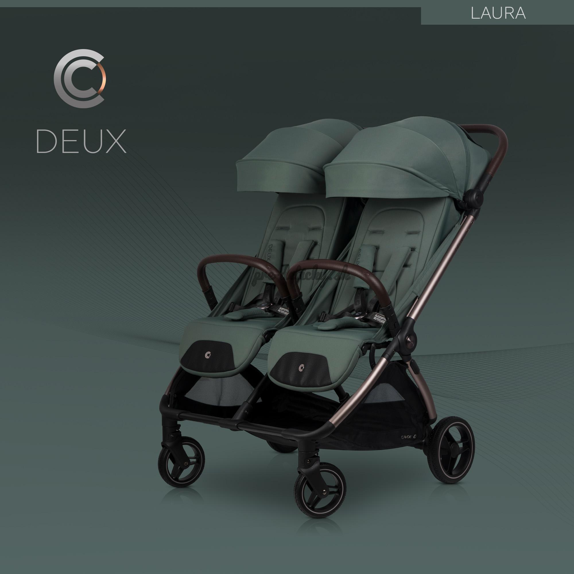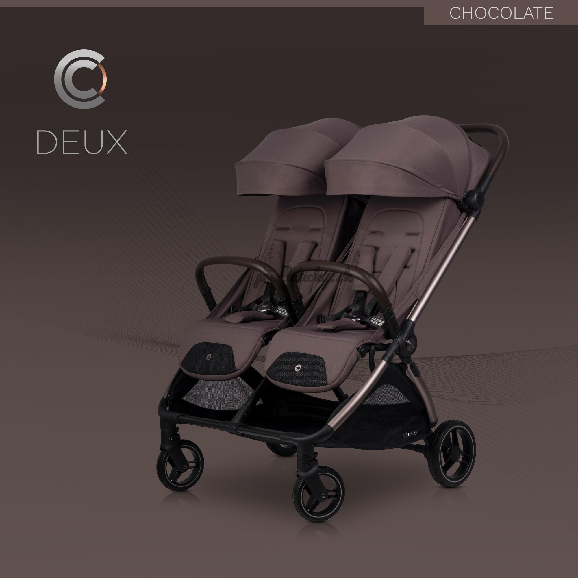 Každé sedadlo má 3-stupňovú reguláciu operadla, ktorá zahŕňa pozície: úplne ležiacu, pololežiacu a úplne sediacu. Podnožky kočíka DEUX sú tiež regulovateľné a v plnom ohnutí zabezpečujú pohodlný prístup k stupienku pre staršie dieťa. Šírka sedadla je 32 cm, výška operadla 46 cm a hĺbka sedadla 20 cm, čo poskytuje dostatok priestoru pre pohodlné sedenie.