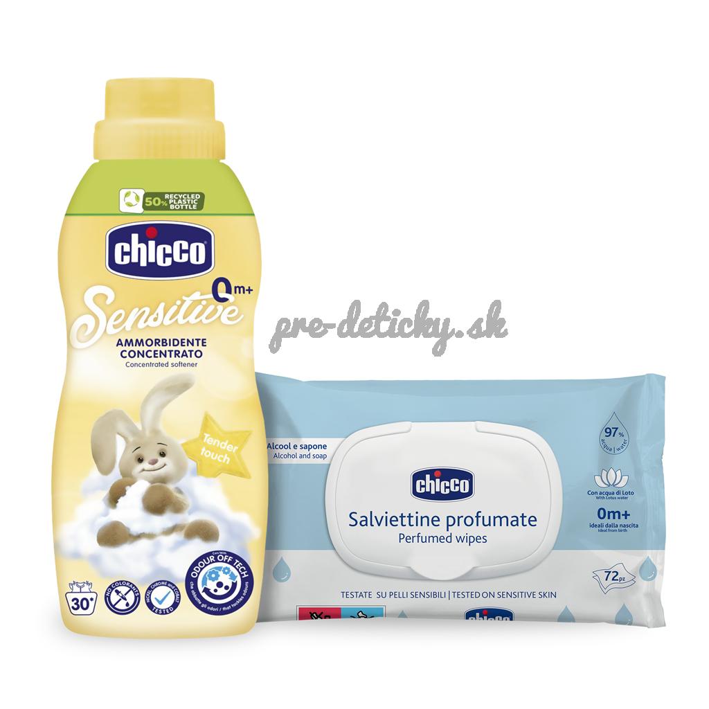 CHICCO Aviváž koncentrovaná Baby Sensitive Jemný dotyk 750 ml + vlhčené obrúsky 72 ks zadarmo