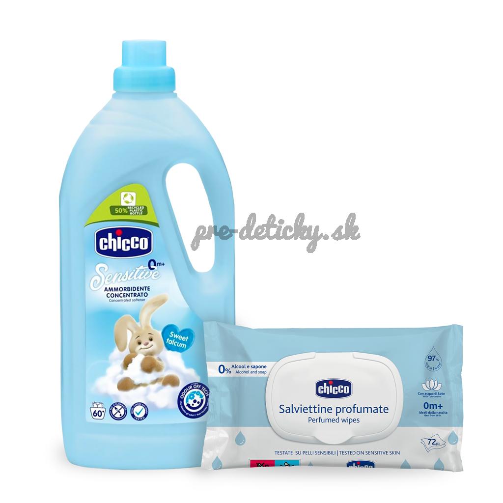 CHICCO Aviváž koncentrovaná Sladký Púder 1,5 l, 60 pranie + vlhčené obrúsky 72 ks zadarmo