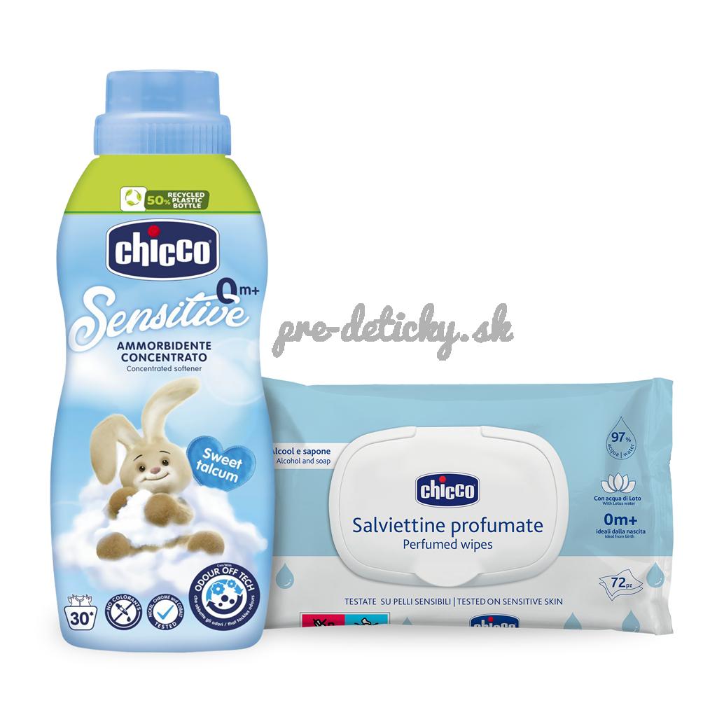 CHICCO Aviváž koncentrovaná Sladký Púder 750 ml + vlhčené obrúsky 72 ks zadarmo
