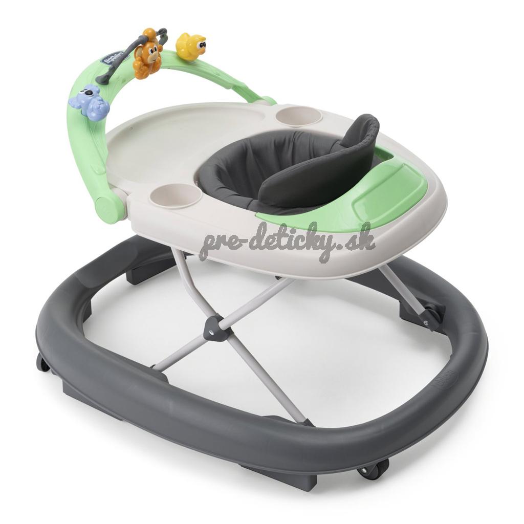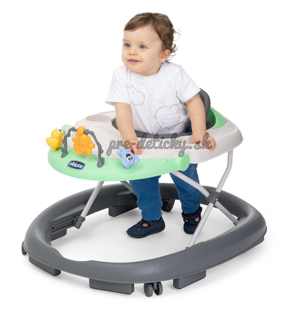 Zábavné chodítko Walky Talky bolo navrhnuté podľa odporúčaní pediatrov ako podpora pri prvých pohyboch dieťaťa. Má nastaviteľnú výšku, vďaka čomu zaisťuje správny kontakt nôh dieťaťa a podlahy. Integrovaný hrací panel obsahuje hračky, ktoré stimulujú zmyslový a motorický vývoj dieťaťa. Sedadlo je dostatočne široké, pohodlné a bezpečné. Výhodou je kompaktné skladanie, takže ho viete jednoducho skladovať a prepravovať.