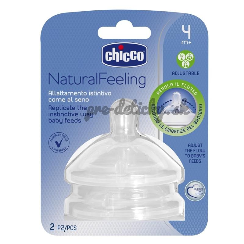 CHICCO Cumlík na fľašu Natural Feeling silikón nastaviteľný prietok 4m+ 2 ks