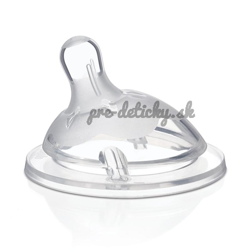Tvarovaný cumlík z mäkkého silikónu podporuje pohodlnú a prirodzenú polohu pre novorodencov. Vďaka tvaru prsníka cumlík uľahčuje prechod medzi dojčením a fľašou už od prvých kŕmení. Dvojitý anti-kolikový ventil zabraňuje nežiaducemu prehĺtaniu vzduchu, a tým znižuje riziko boľavého bruška, vrackania či detskej koliky.