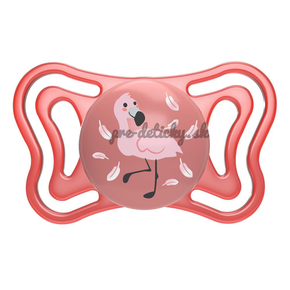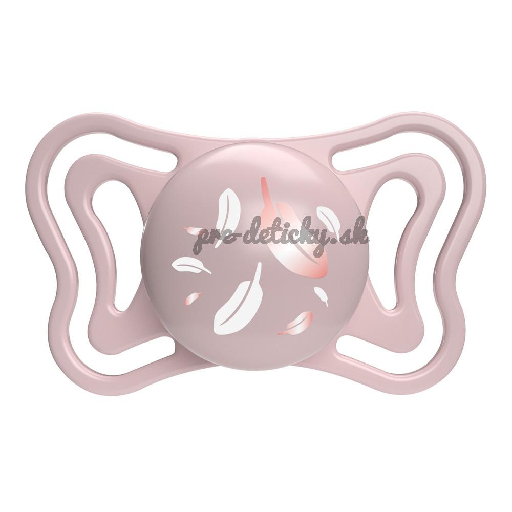 • extrémne mäkká zúžená pätička cumlíka umožňuje dieťaťu zavrieť ústa a redukuje riziko nerovnomerných zubných oblúkov (je ortodonticky korektná)