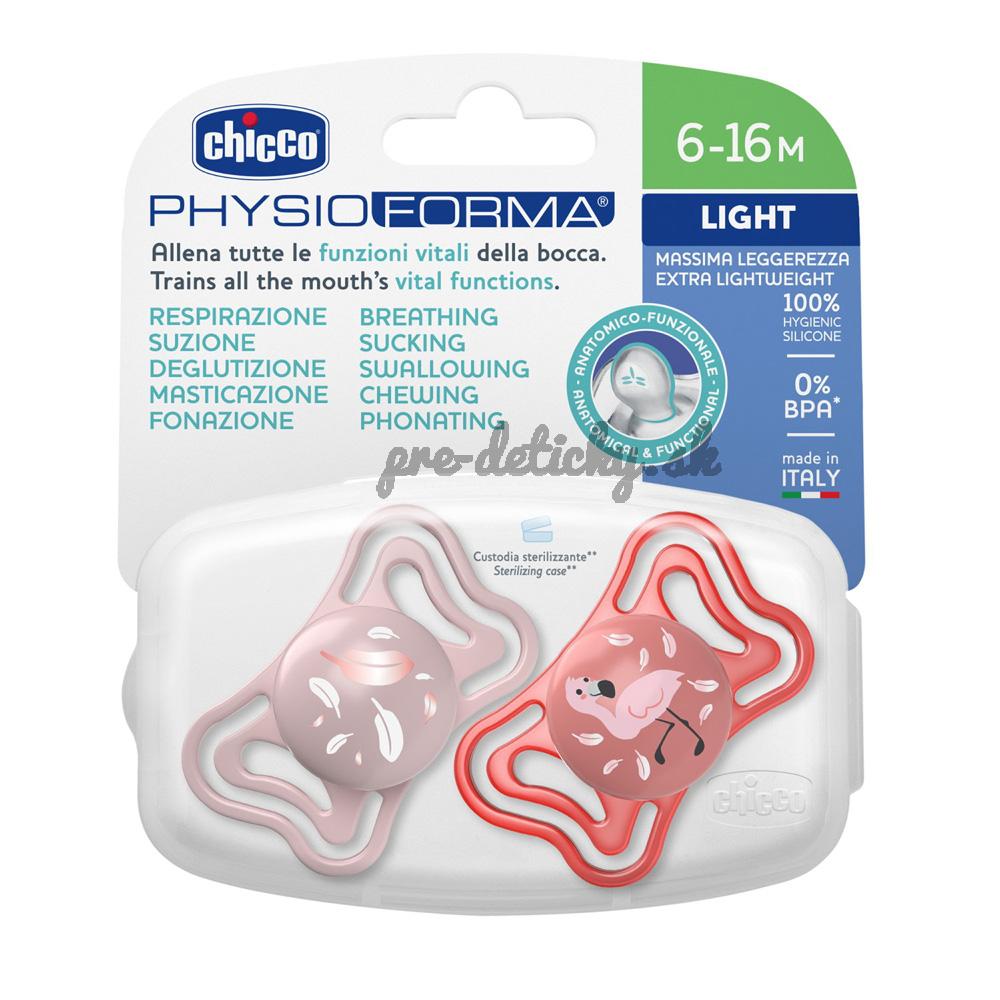 CHICCO Cumlík Physio Light silikónový dievča 6-16m, 2 ks