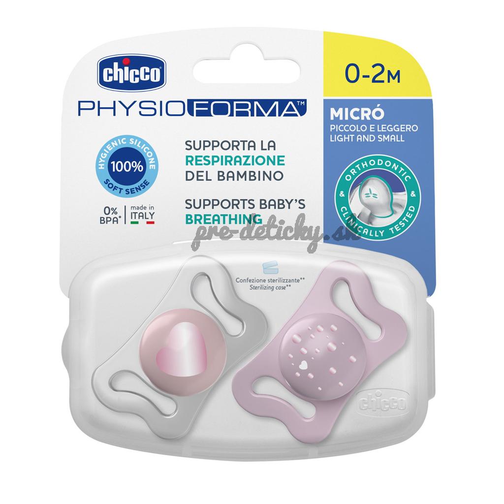 CHICCO Cumlík Physio Micro silikónový 0-2m dievča 2 ks