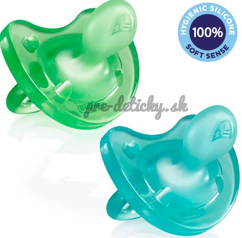 CHICCO Cumlík Physio Soft celosilikónový 6-16m chlapec 2 ks