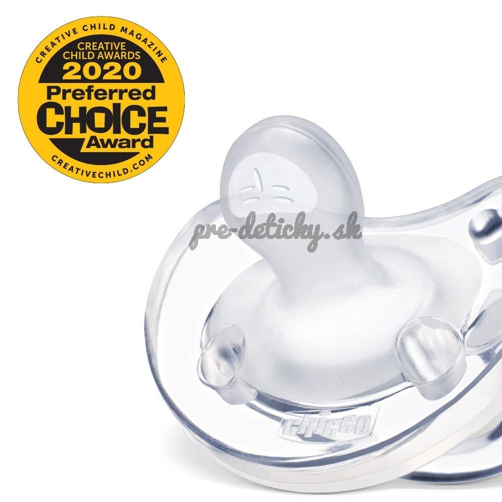 Celosilikónový cumlík Chicco Physio Soft rady Physioforma je unikátny aktívny ortodontický upokojujúci cumlík vyrobený z jedného kusu bez rušivých spojov. Celý cumlík je zo 100 % hygienického silikónu s hodvábnym finišom, teda z materiálu, ktorý sa nedeformuje, jeho povrch je extra hebký a jemný a vhodný aj pre tú najcitlivejšiu pokožku.