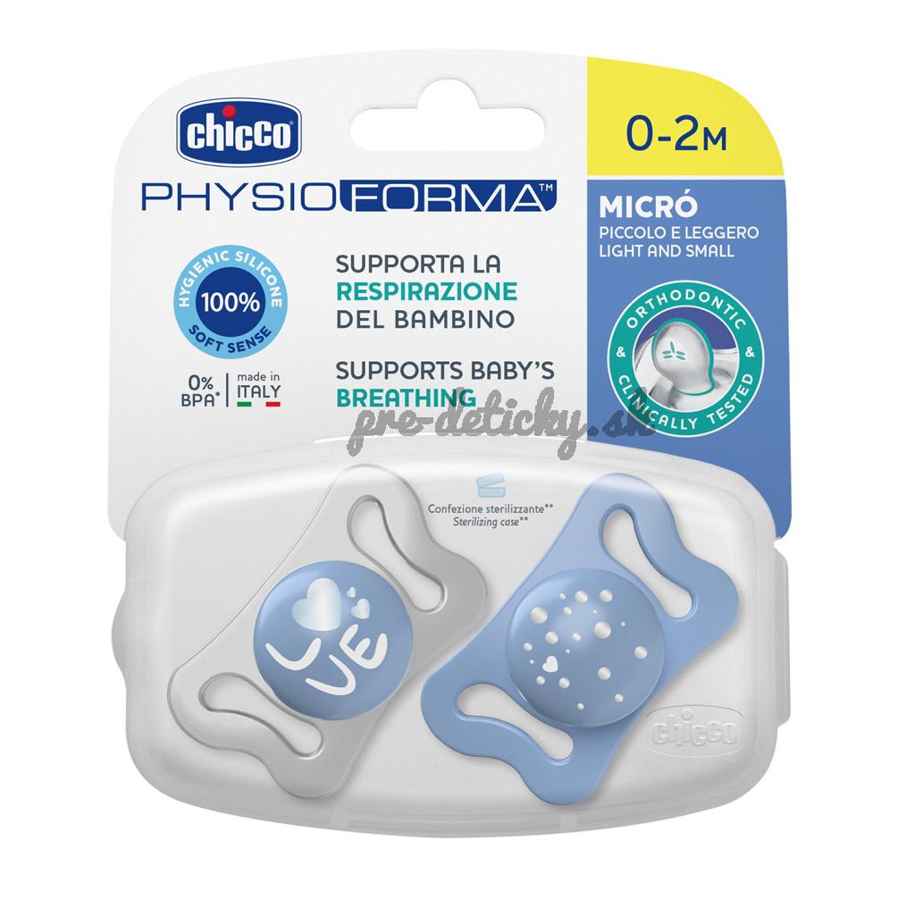 CHICCO Cumlík Physioforma® Micro silikónový 0-2m chlapec 2 ks