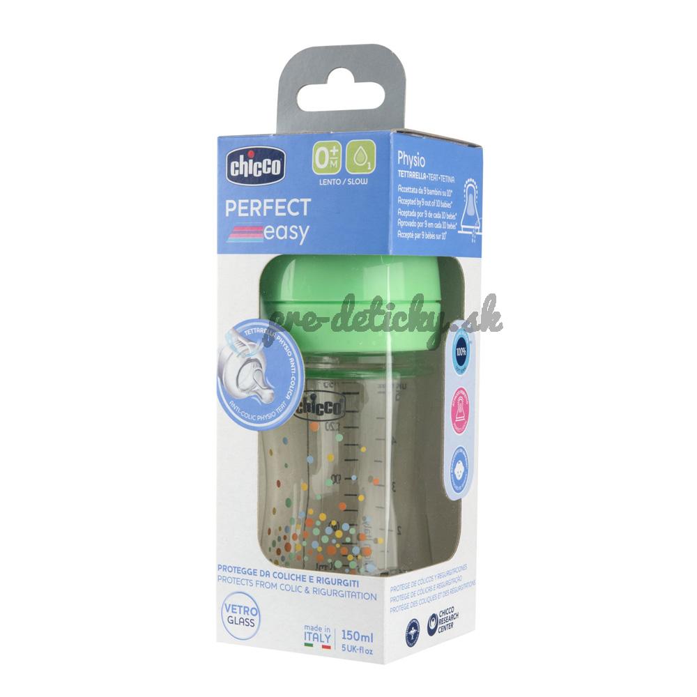 CHICCO Fľaša dojčenská sklenená Perfect Easy 150 ml slow silikón neutral 0m+