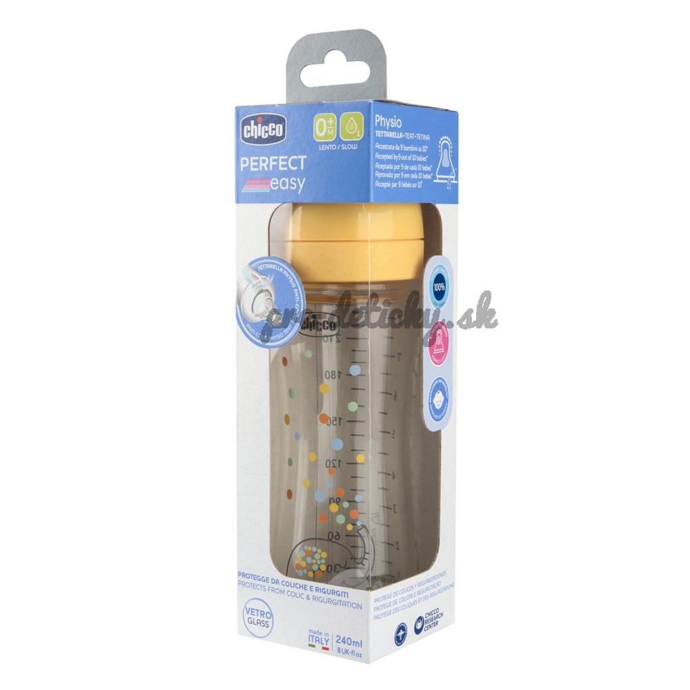 CHICCO Fľaša dojčenská sklenená Perfect Easy 240 ml slow silikón neutral 0m+