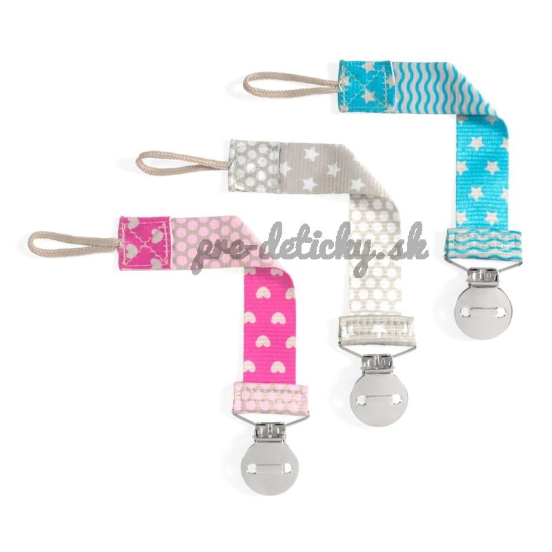 Univerzálny a módny klip Chicco Fashion je vhodný pre väčšinu cumlíkov. Vďaka nemu bude mať dieťatko aj vy svoj obľúbený cumlík vždy pri sebe a ostane tak dlhšie čistý. Potlač je obojstranná. Inovatívny dizajn umožňuje jednoduché pripevnenie na cumlíky. Na cumlíky s krúžkom ho jednoducho pripevníte pomocou šnúrky a cumlíky bez krúžka sa prichytia vďaka mäkkému krúžku na konci klipu.