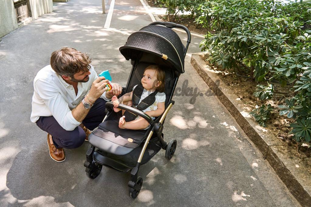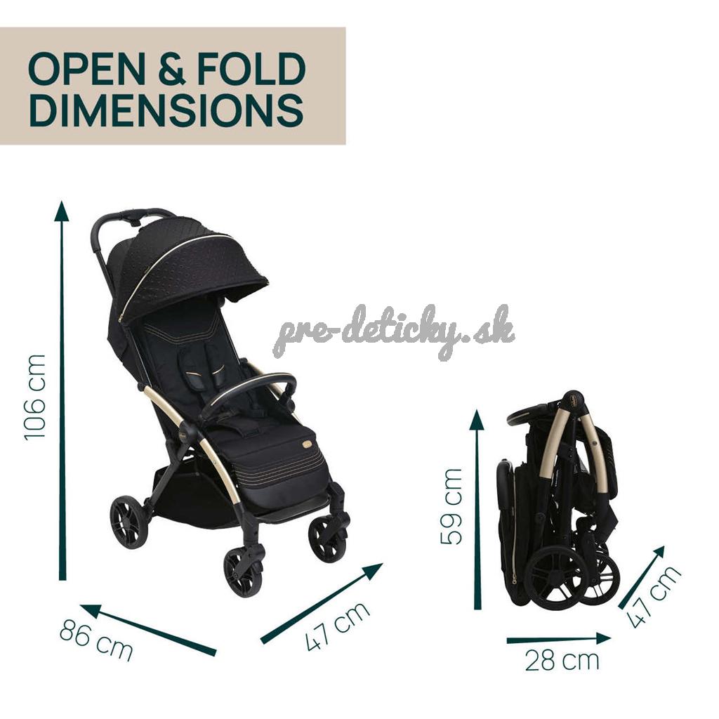 Stačí jeden dotyk a kočík sa sám zloží! Po zložení je skutočne kompaktný a stojí samostatne. Madlo sa dá tiež poskladať pre dosiahnutie väčšej kompaktnosti alebo môže byť použité ako rukoväť na prenášanie.