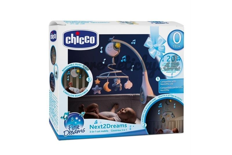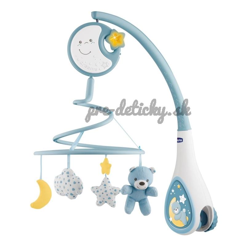CHICCO Kolotoč nad postieľku a závesná hračka 3v1 Next2Dreams modrá 0m+