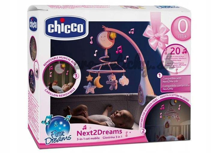 CHICCO Kolotoč nad postieľku a závesná hračka 3v1 Next2Dreams ružová 0m+