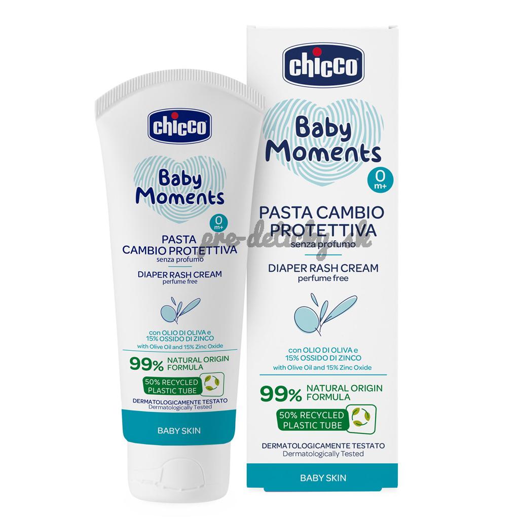 CHICCO Krém na detský zadoček Baby Moments bez parfému s 99% prírodných zložiek 100ml, 0m+