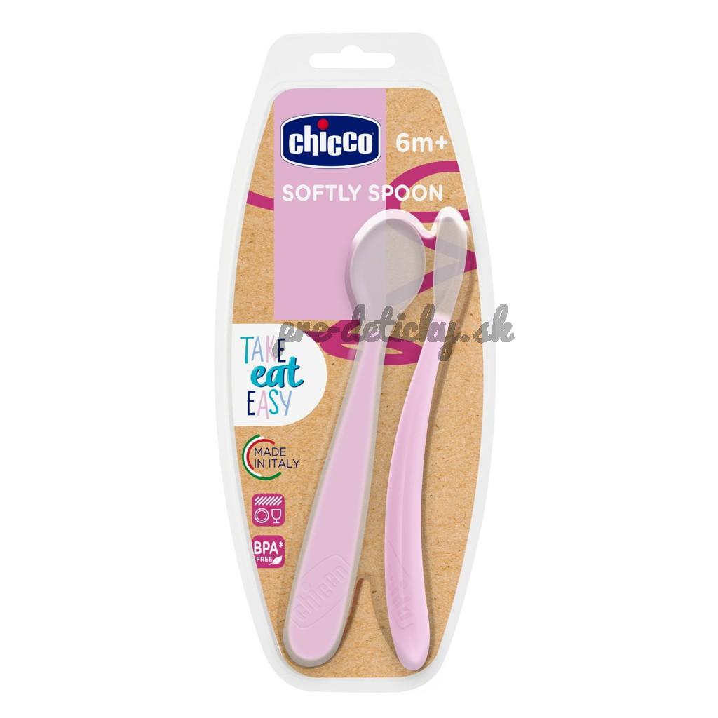 CHICCO Lyžička silikónová 2 ks ružová 6m+