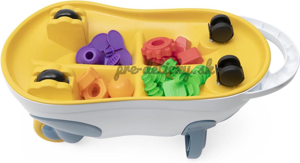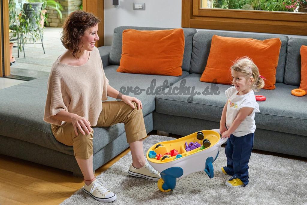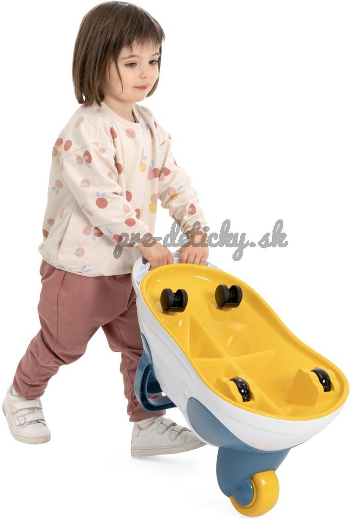 3. Od 18 mesiacov možno hračku používať ako fúrik. Otočenú hračku hore nohami dieťa tlačí za ako fúrik, aby mohlo prenášať akýkoľvek predmet. Táto činnosť pomôže deťom rozvíjať kreativitu a voľný pohyb v priestore.