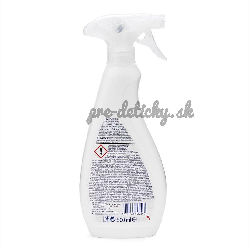 - Chicco odstraňovač škvŕn špeciálne vytvorený s aktívnym kyslíkom efektívne odstraňuje škvrny a to najmä s ktorými dieťa prichádza do kontaktu najviac (napr. tráva, rajčina, ovocie,...)