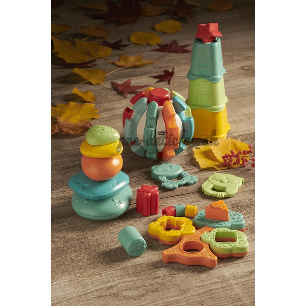 Verzia klasickej pohárikovej stohovacej hry 2v1. Triedenie tvarov a skladanie veže z materiálu vyrobeného z recyklovaného plastu.