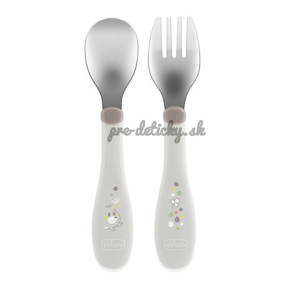 CHICCO Príbor detský z nerezovej oceli grey 18m+