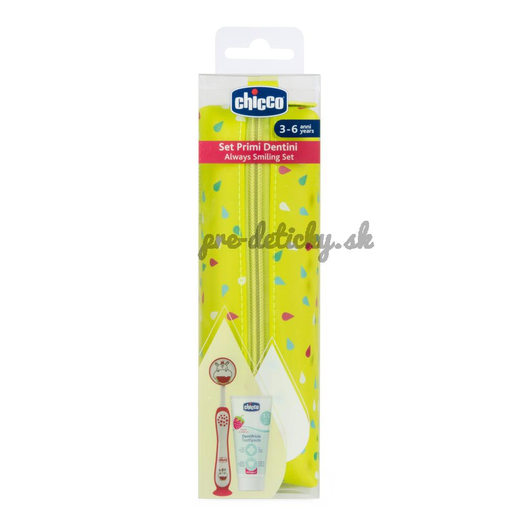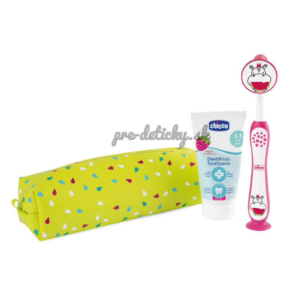 CHICCO Set zubná kefka a pasta v puzdre - Hippo, 3r+