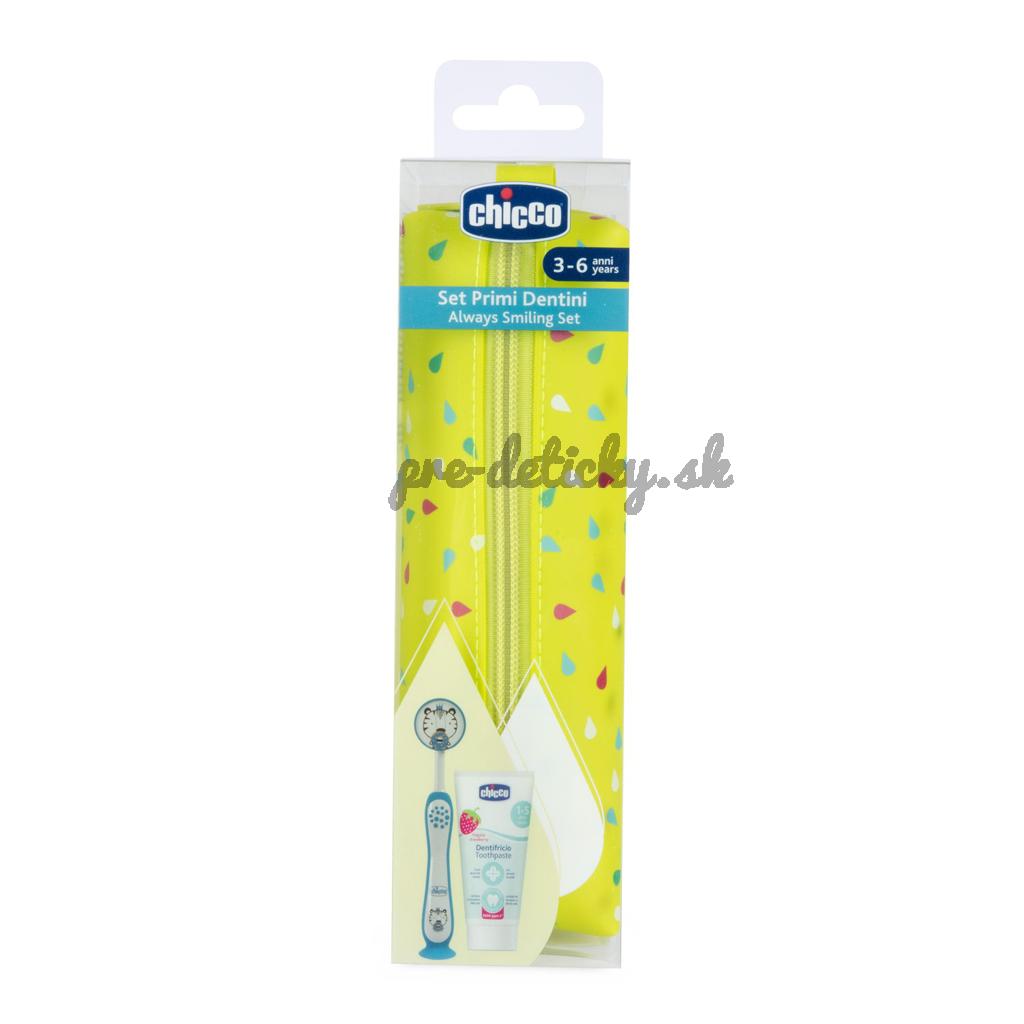 Cestovná sada zubnej hygieny Chicco je užitočná nielen pri cestovaní, ale aj v materskej škole alebo napríklad na návšteve u starých rodičov. Pomáha deťom pri základnej starostlivosti o dentálnu hygienu. Sada obsahuje zubnú kefku na mliečne zuby, zubnú pastu s obľúbenou jahodovou príchuťou a farebný hrnček – všetko v roztomilom cestovnom puzdre.