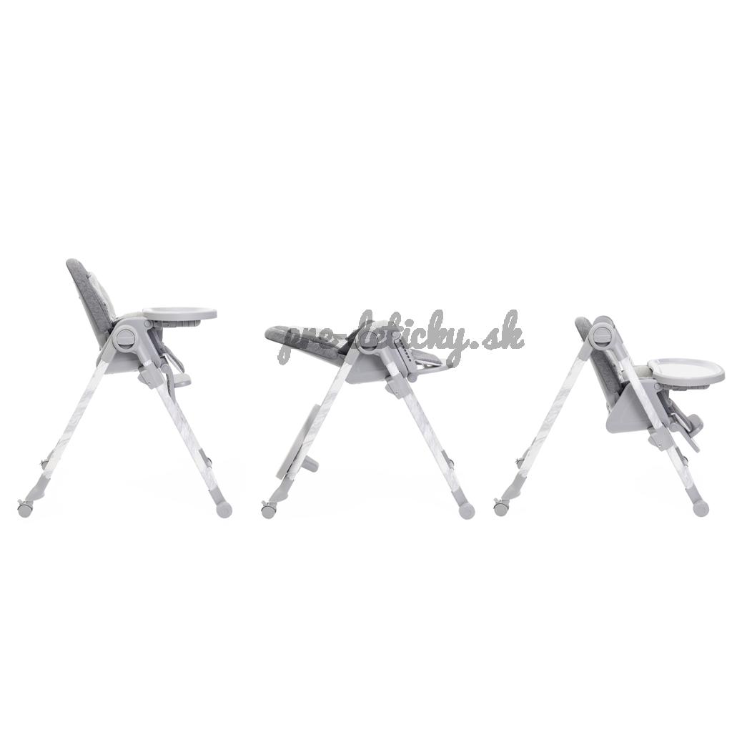 Jedálenská stolička sa dá výškovo nastaviť do 9 rôznych pozícii a prispôsobí sa tak výške, ktorú aktuálne potrebujete. Má 4 kolieska vďaka ktorým viete stoličku prakticky presúvať. Opierka chrbta sa dá nastaviť do úplného ľahu. Opierka nožičiek je rovnako nastaviteľná pre úplný komfort dieťaťa.