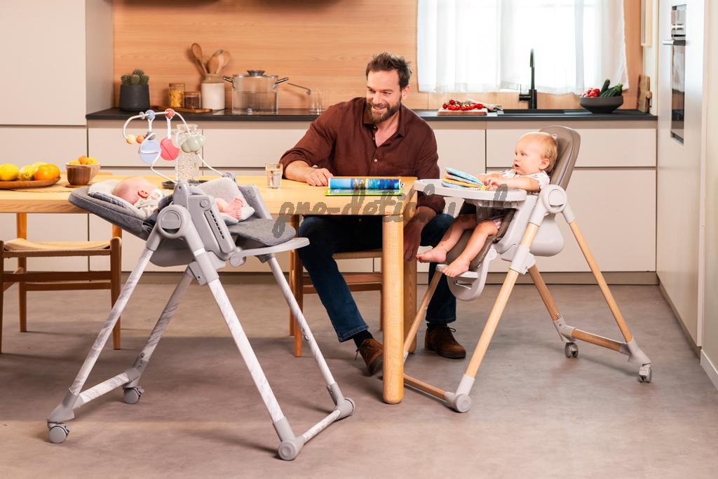 - od 3 rokov až do 40 kg možno stoličku nastaviť do pozície, v ktorej dieťa môže stolovať pri jedálenskom stole. Stačí odobrať tácku, stoličku nastaviť do potrebnej výšky a prisunúť k stolu.