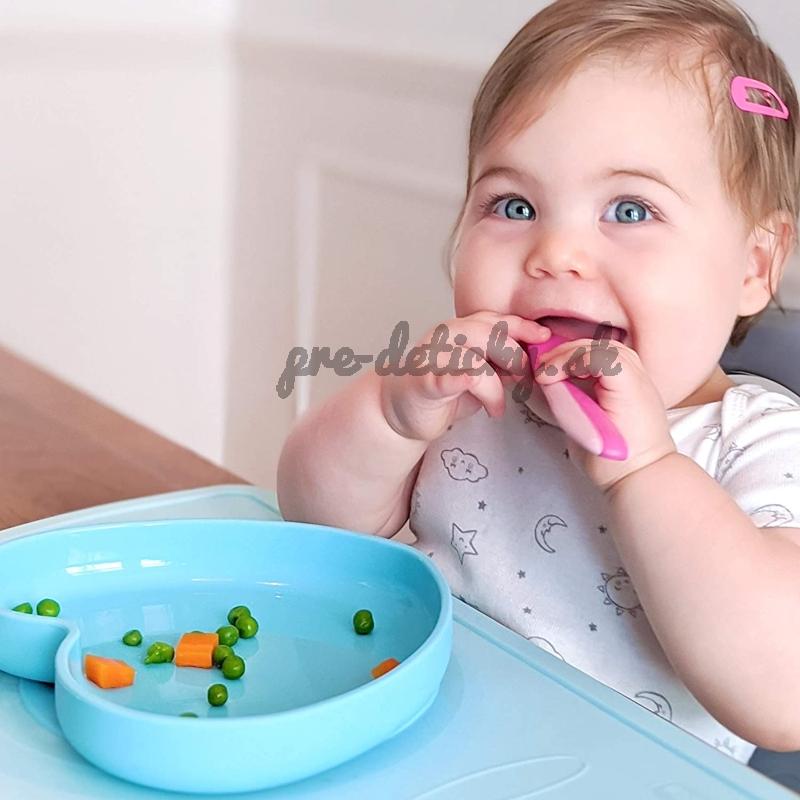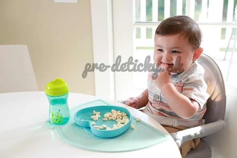 - Podstavec s prísavkou na spodnej strane taniera ho udrží na mieste aj pri prvých pokusoch o samostatné jedenie. To je veľmi dôležité pri rozvoji detskej motoriky. Napriek tomu je tanierik ľahký, flexibilný a prenosný aj na jedlo mimo domova.