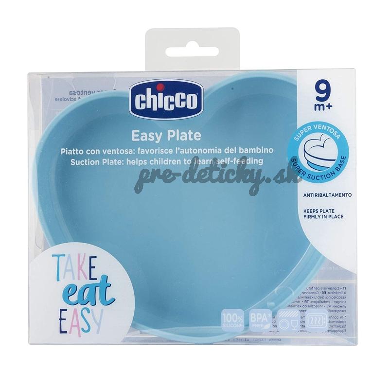 Silikónový tanier v tvare srdiečka z evolučnej rady Chicco Take Eat Easy určenej na dosiahnutie samostatnosti pri jedení je ideálny pomocník pre dieťa na ceste učenia sa jesť bez pomoci druhých.