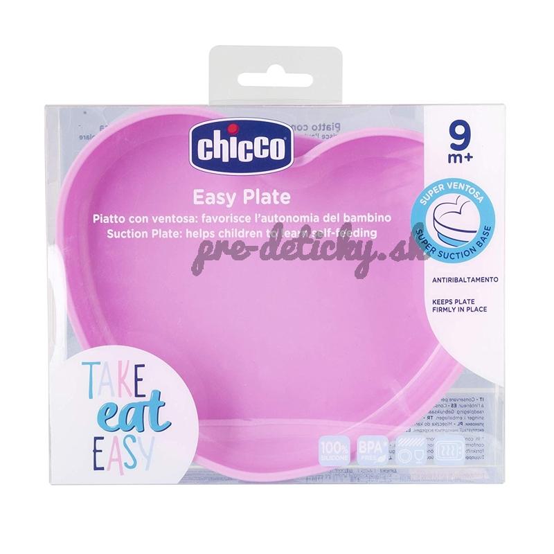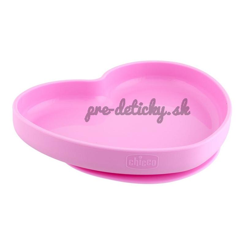Silikónový tanier v tvare srdiečka z evolučnej rady Chicco Take Eat Easy určenej na dosiahnutie samostatnosti pri jedení je ideálny pomocník pre dieťa na ceste učenia sa jesť bez pomoci druhých.