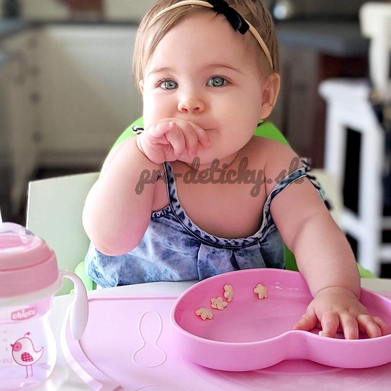 - Podstavec s prísavkou na spodnej strane taniera ho udrží na mieste aj pri prvých pokusoch o samostatné jedenie. To je veľmi dôležité pri rozvoji detskej motoriky. Napriek tomu je tanierik ľahký, flexibilný a prenosný aj na jedlo mimo domova.