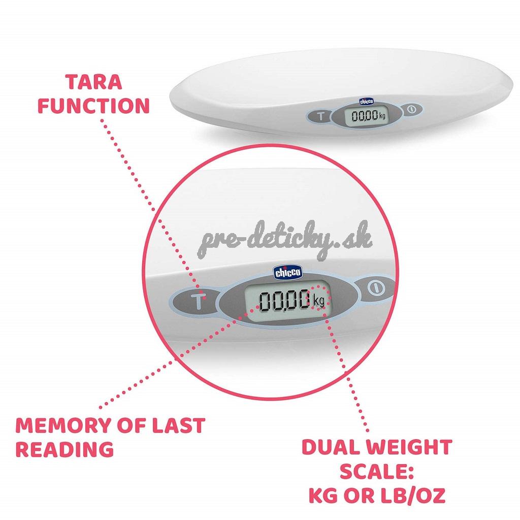 Ergonomicky navrhnutá a kompaktne tvarovaná Chicco Baby Comfort Digitálna elektronická váha zváži Vaše dieťa už od jeho prvých dní. Rozsah váhy je od 30g do 20kg.