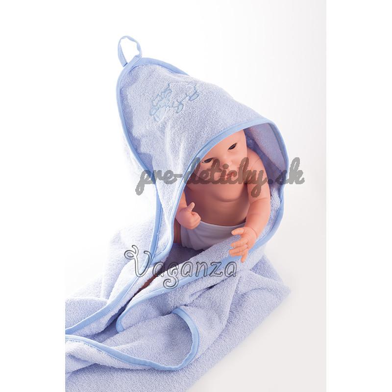 Krásna detská froté osuška s kapucňou, vyšívaným obrázkom a rukavicami na kúpanie.